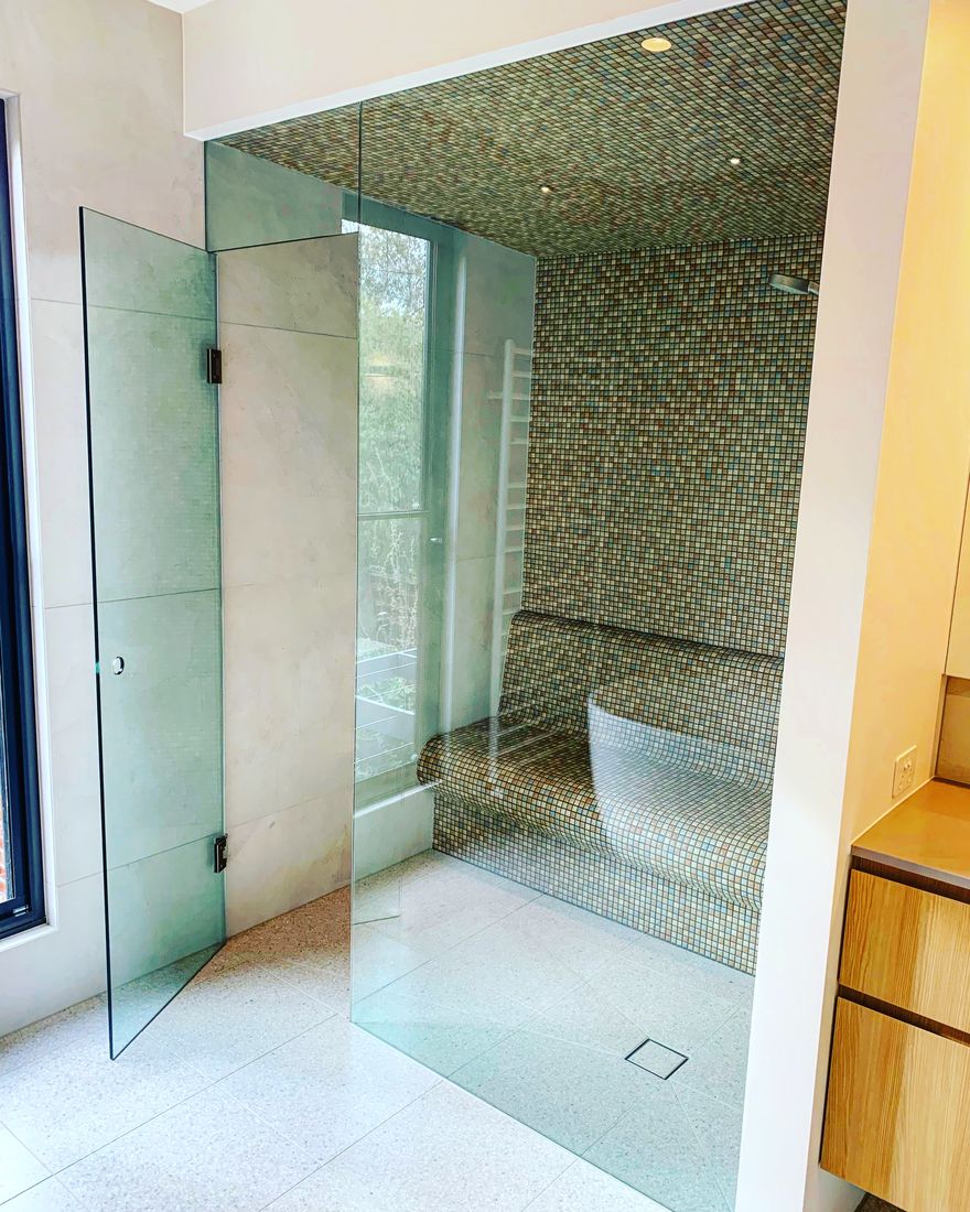 These glass panels are safe prescisely measured according to the bathroom area and installed by highly specialised installers according to the Australian Standards.